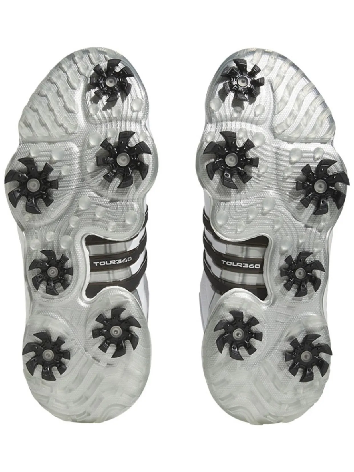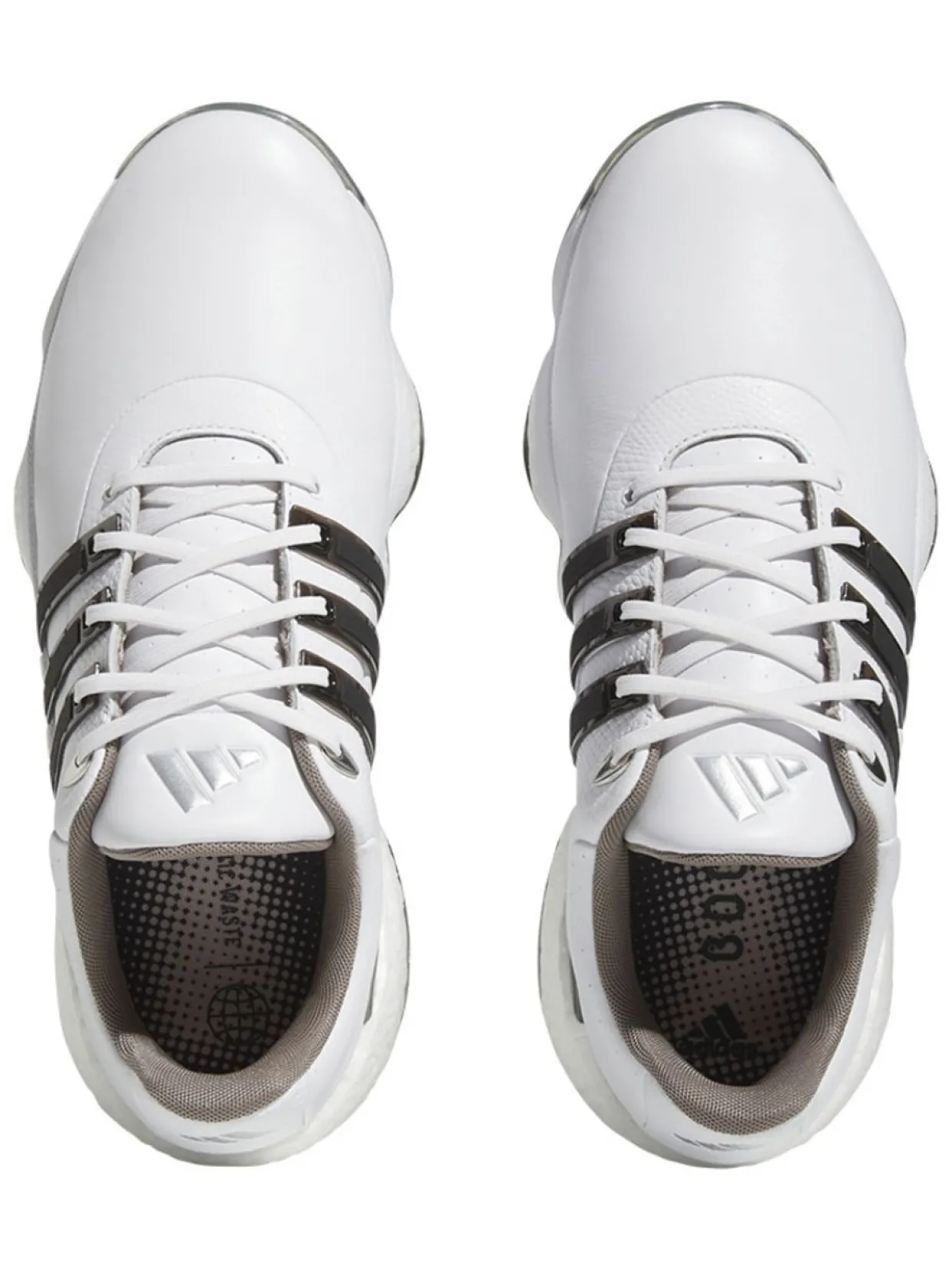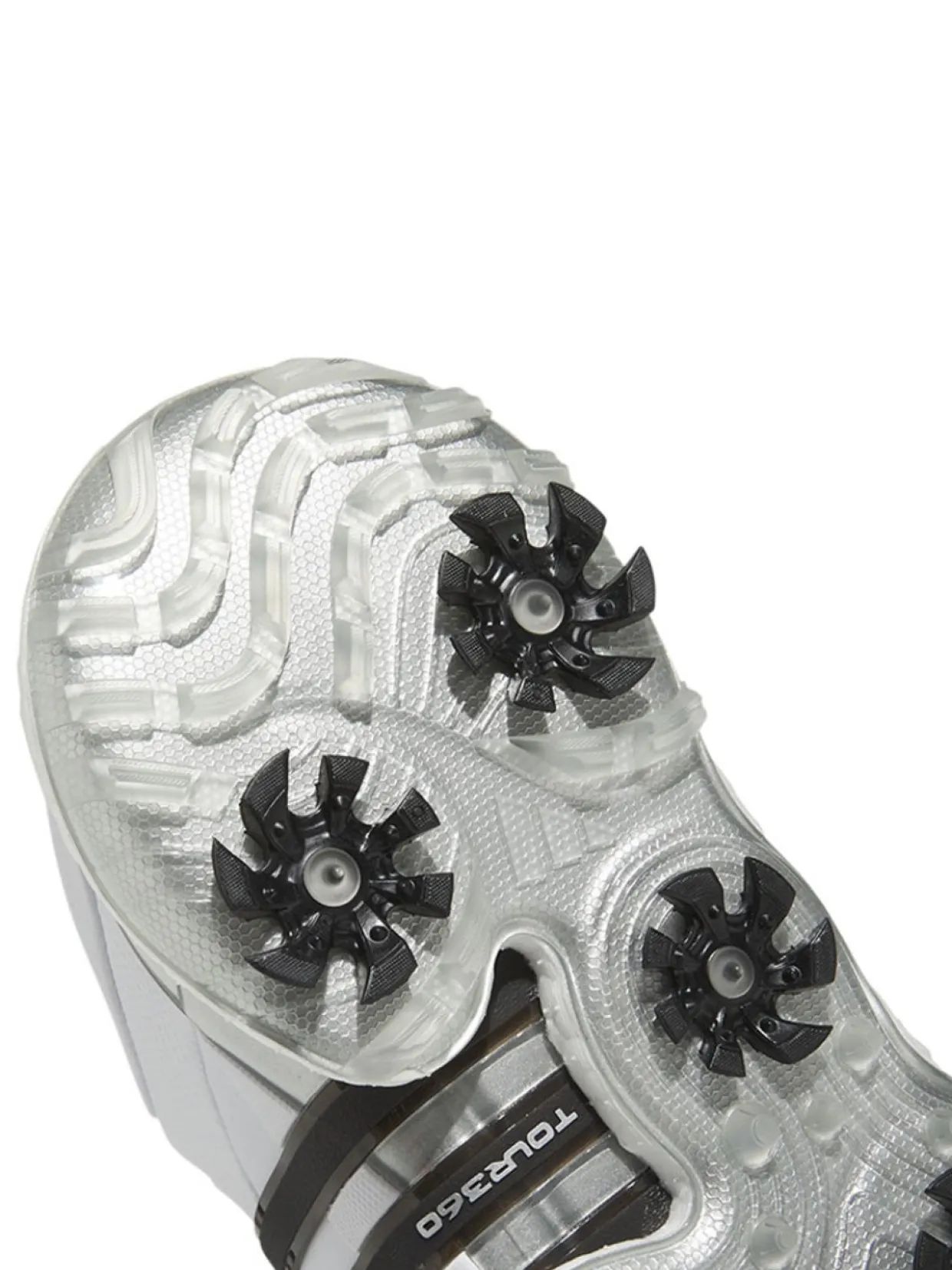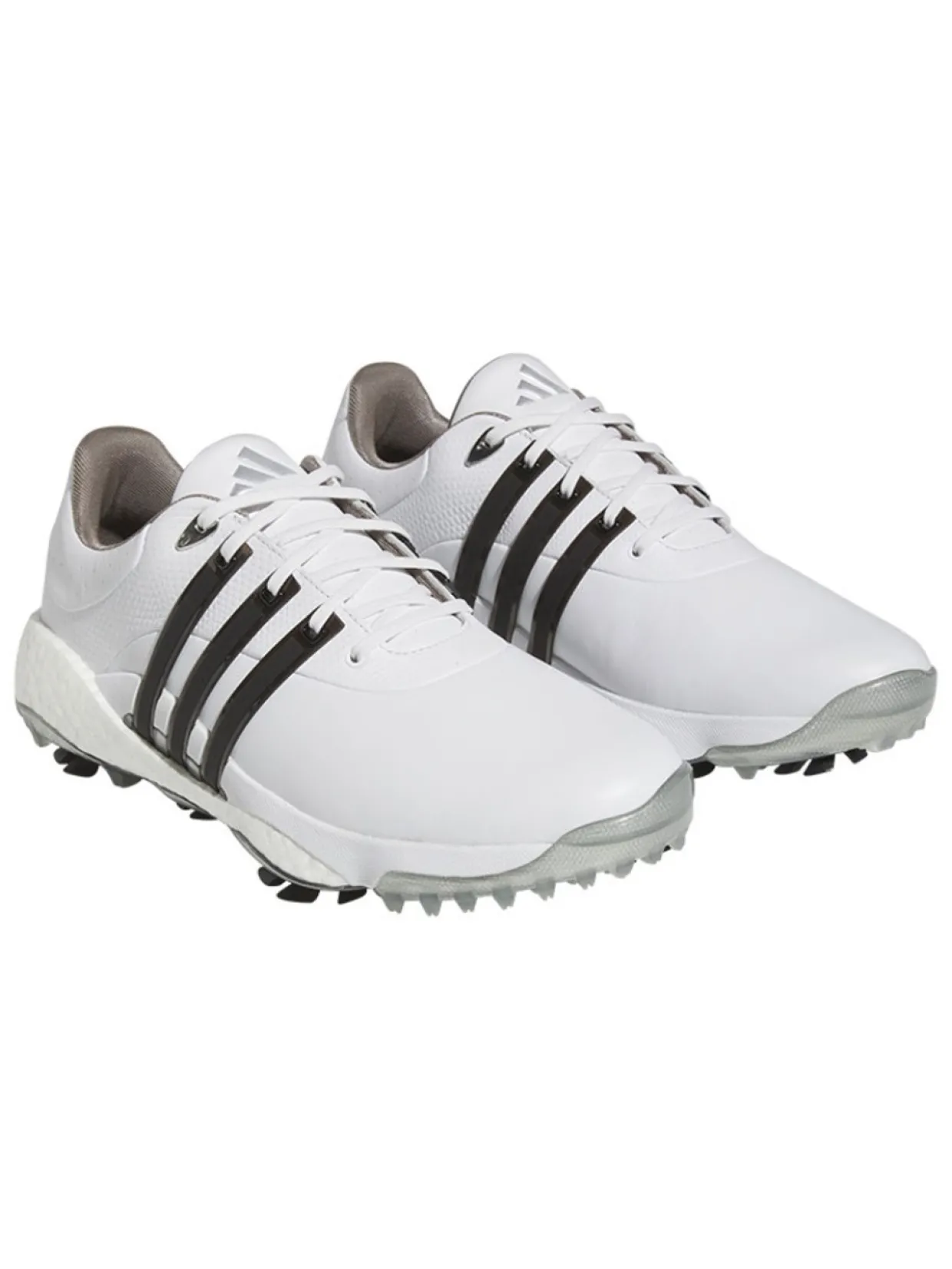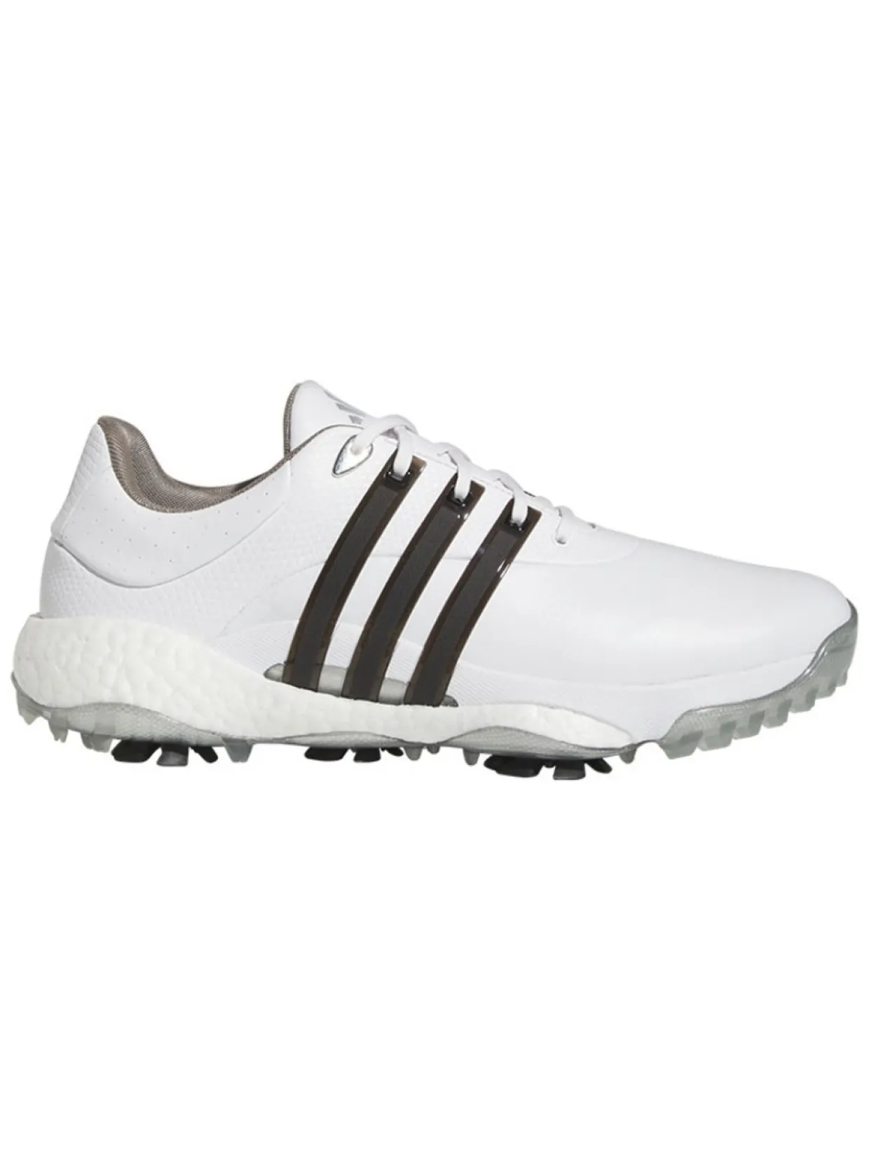 Adidas Tour360 22 Golf Shoes (White/Core Black) Are Made With A Boost Midsole For Energy Return And Enhanced Comfort. The 360Wrap Design Locks In And Supports Your Feet Through 18 Holes And Beyond. An Insite Sockliner Offers Cushioning For Optimal Fit And Balance, And The Spikemore Traction Outsole Provides Solid Grip Throughout Your Entire Round.