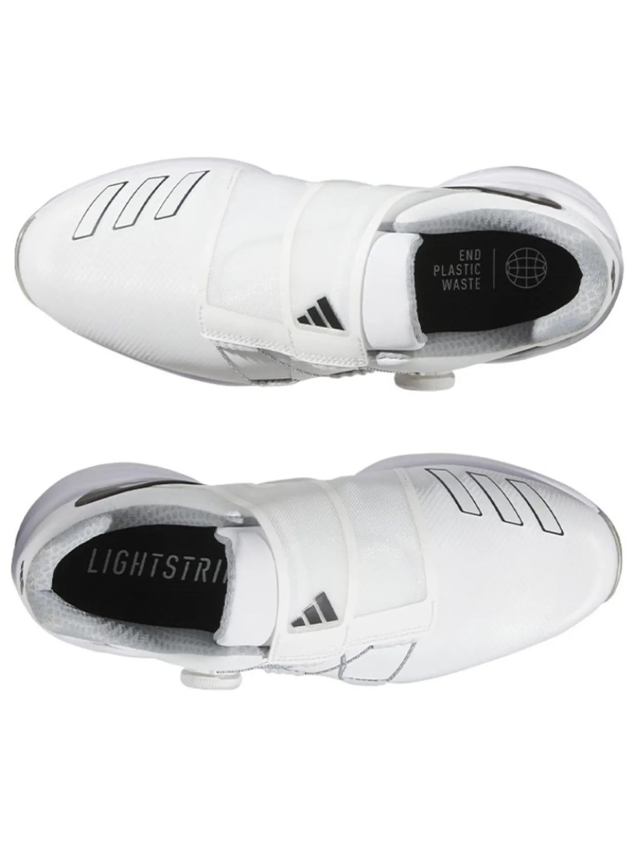 The Adidas Zg23 Boa® Golf Shoes (White/Silver) Are Designed For Tournament Days And Competitive Play. From The Comfort And Added Energy Of A Hybrid Lightstrike Midsole To The Support Of A Waterproof, Soft And Adaptive Upper, They Fuel Every Drive With An Ultralight Feel To Give You A Competitive Edge. Dial In The Boa® Fit System For The Stability To Match Powerful Drives, And Enjoy The Close-To-The-Ground Feel Of The Six-Cleat Outsole For A Stable Stance.