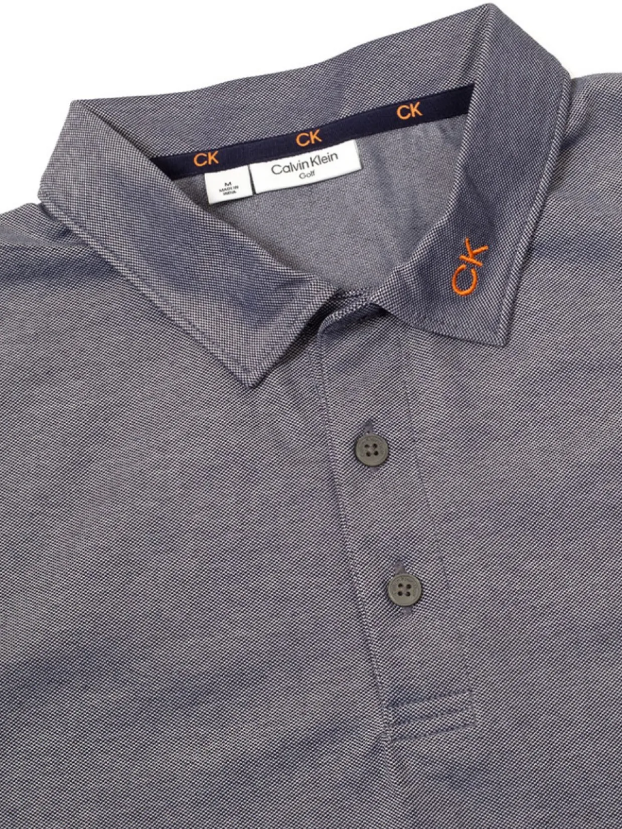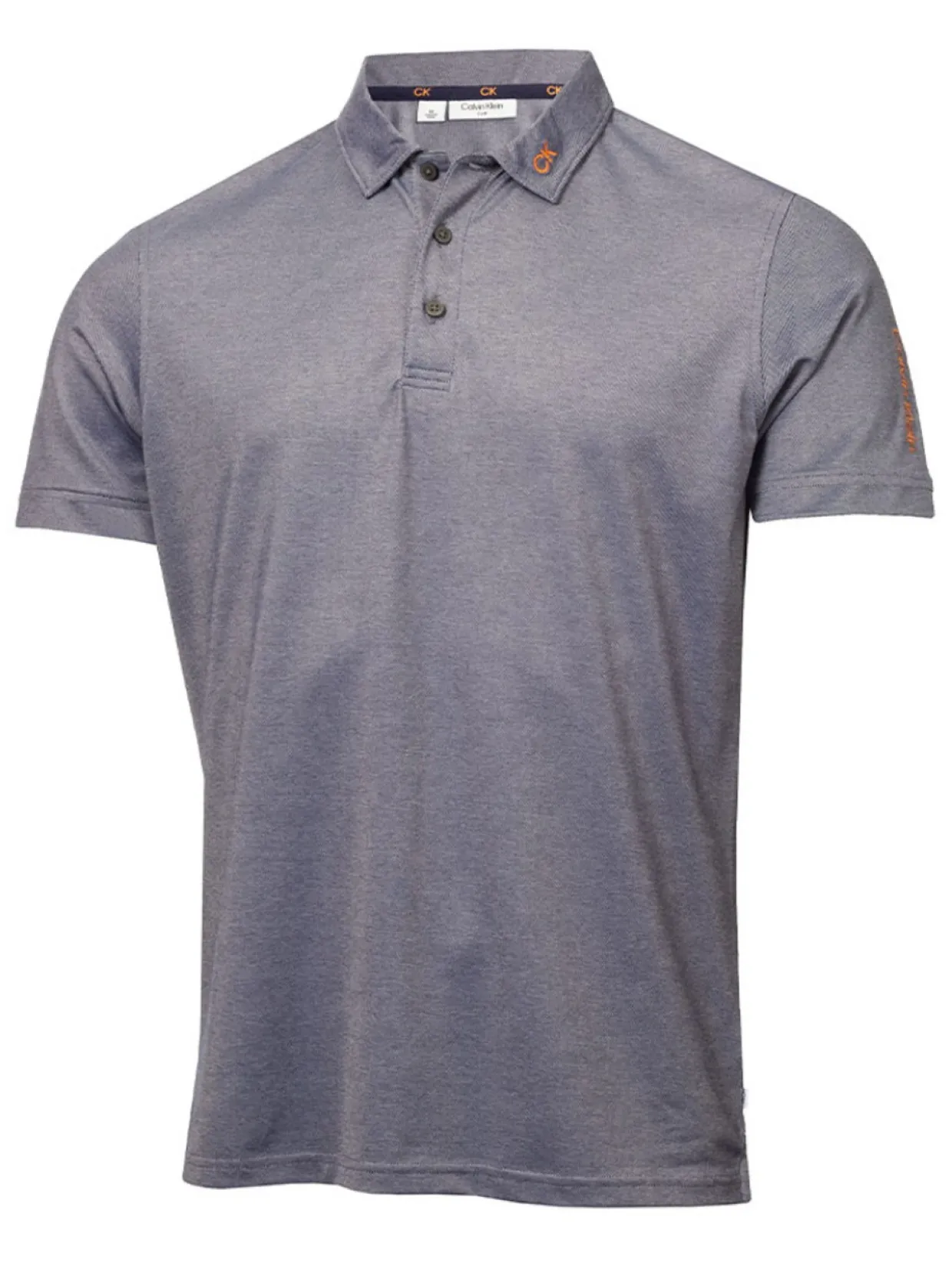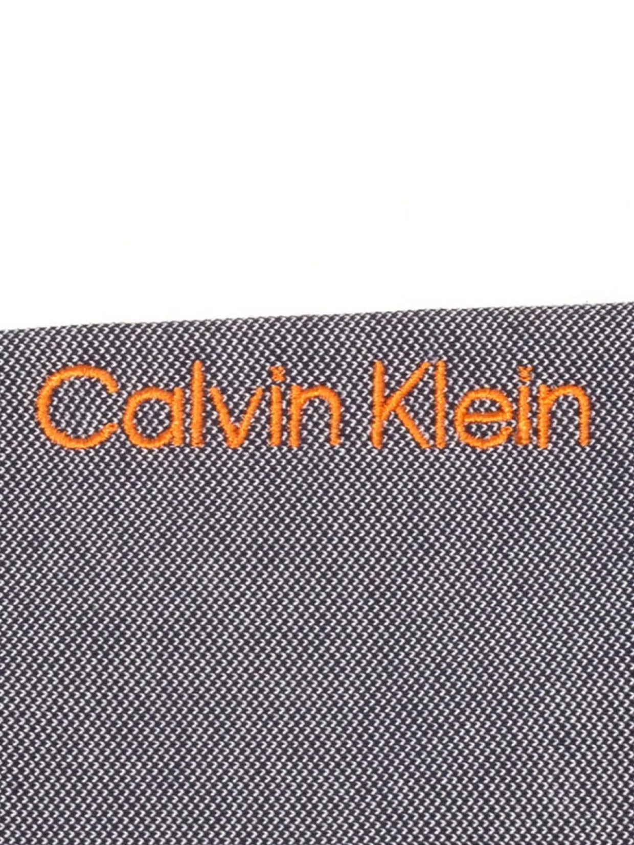 - Ck Embroidered On Left Side Of Collar And Calvin Klein On Left Sleeve