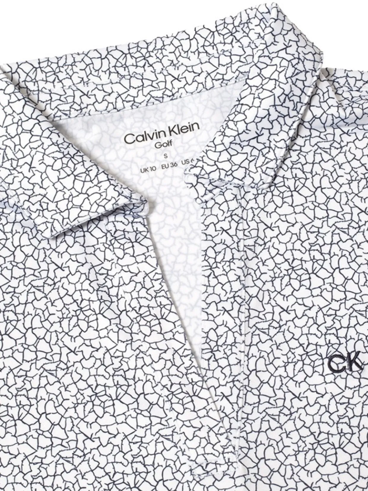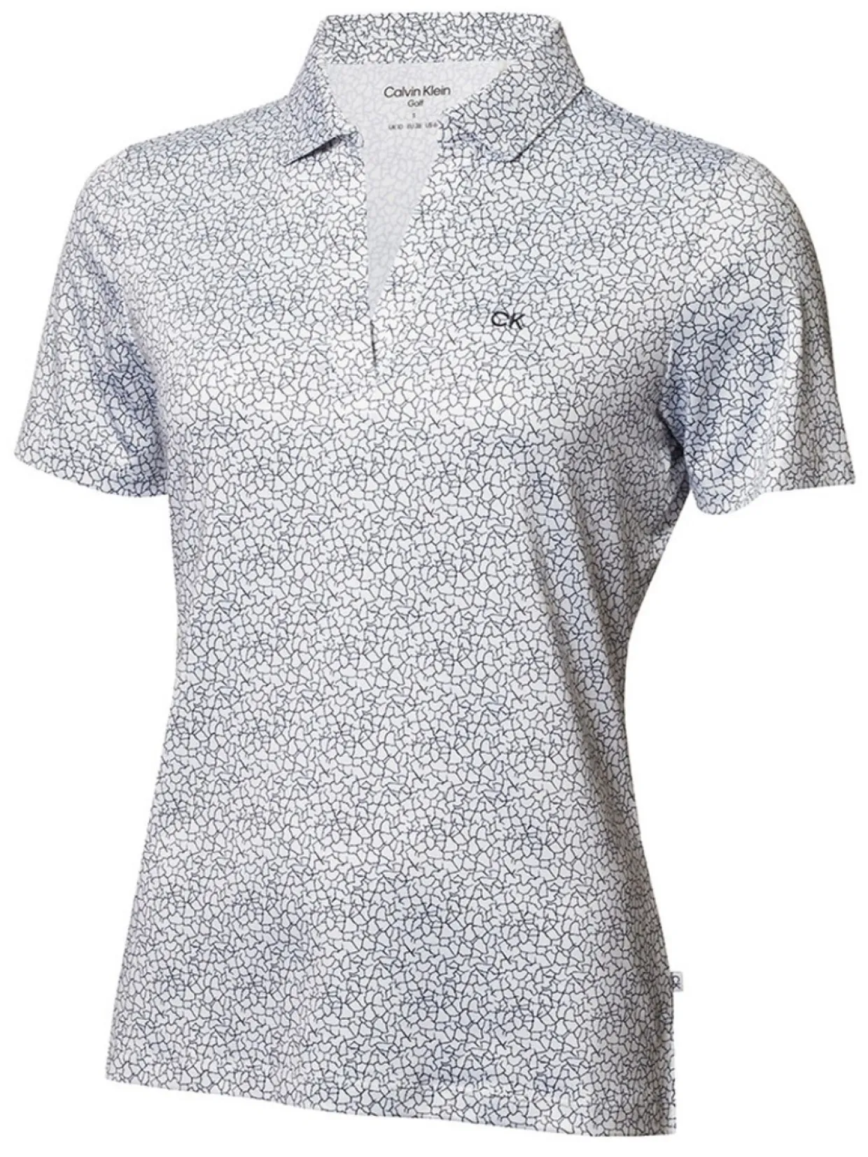 Slay On And Off The Course This Season With The Crackle Polo From Calvin Klein Golf Featuring A Subtle All-Over Printed Fabric And Flattering Open V-Neck Placket. Made From The Silkiest Of Technical Material This Polo Is Comfort Personified And Will Keep You Cool Throughout Your Round. The Recycled Polyester Fabric Is The Planet Conscious Choice For A More Sustainable Future.