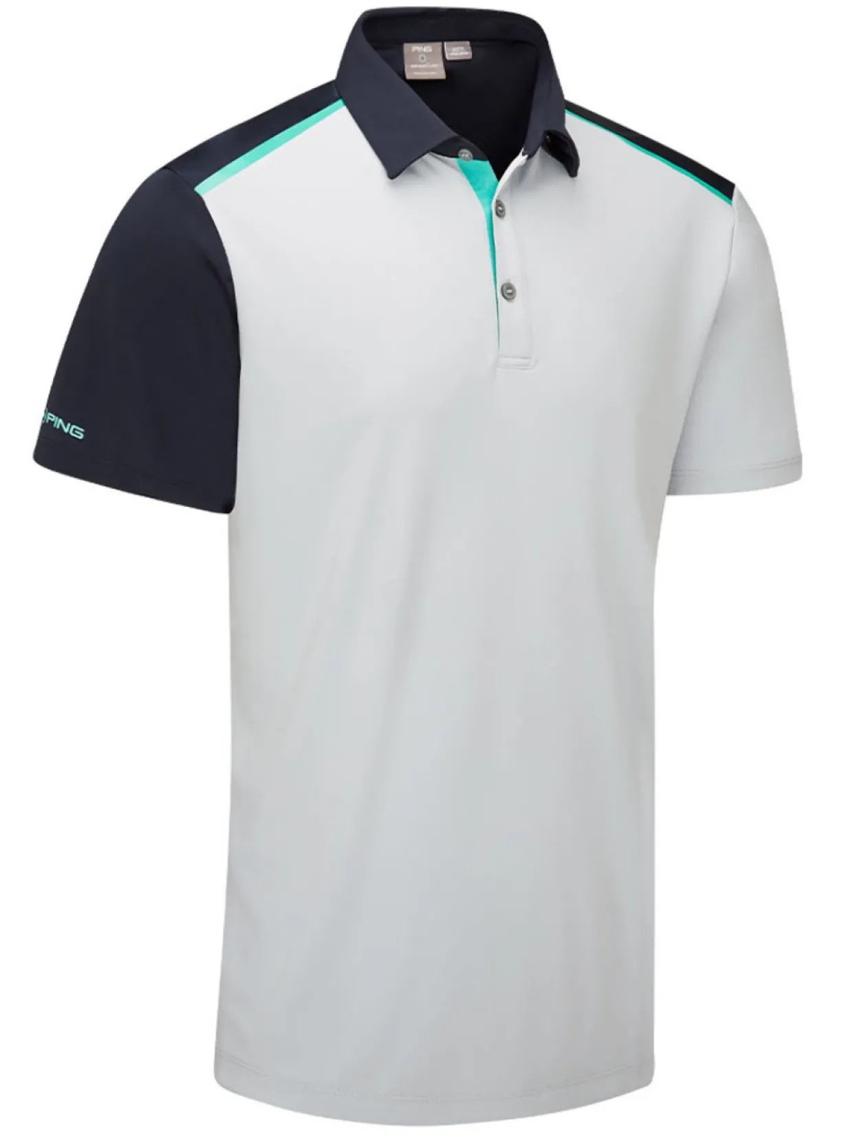 Ping Mack Tailored Fit Polo – Pearl Grey/Navy Multi